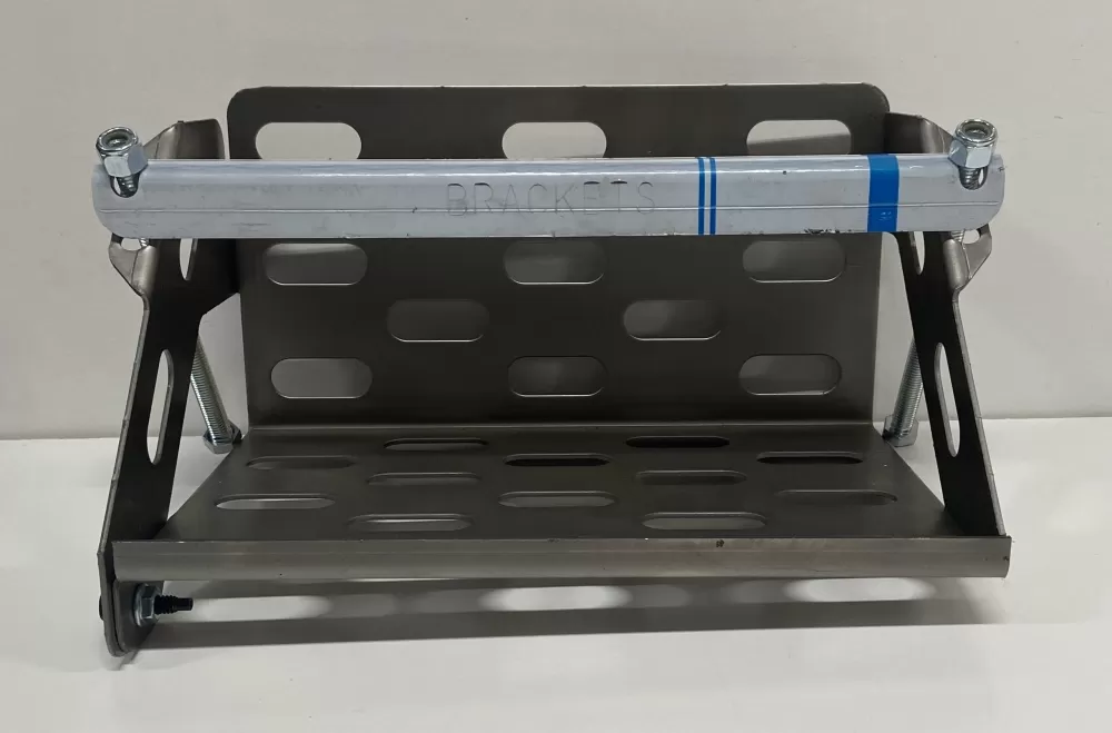 11" long steel battery box with removable left side. Does not include bolts to attach removable side.