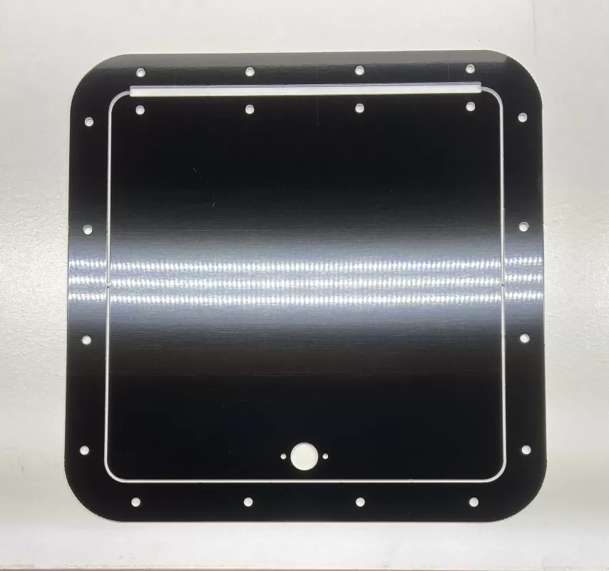 10" long by 10" wide gloss black aluminum access door and frame. It comes with dzus springs and captivated dzus buttons as well as the hinge. This access door and frame come with a protective film for installation.