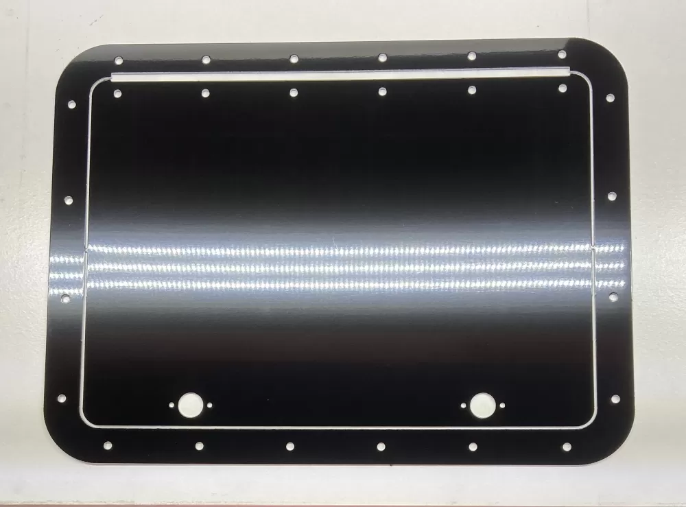 14" long by 10" wide gloss black aluminum access door and frame. It comes with dzus springs and captivated dzus buttons as well as the hinge. This access door and frame come with a protective film for installation.