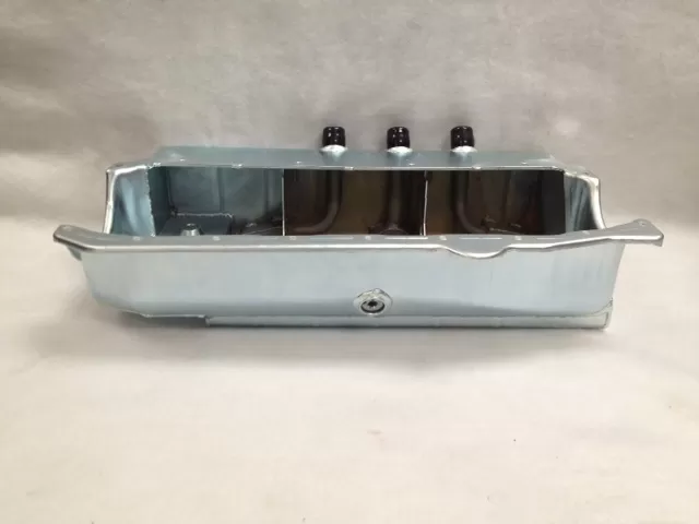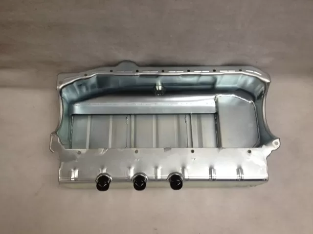 This steel dry sump oil pan is for the Small Block Chevrolet years 1957-1985 with the two piece rear main seal engines. This oil pan features: