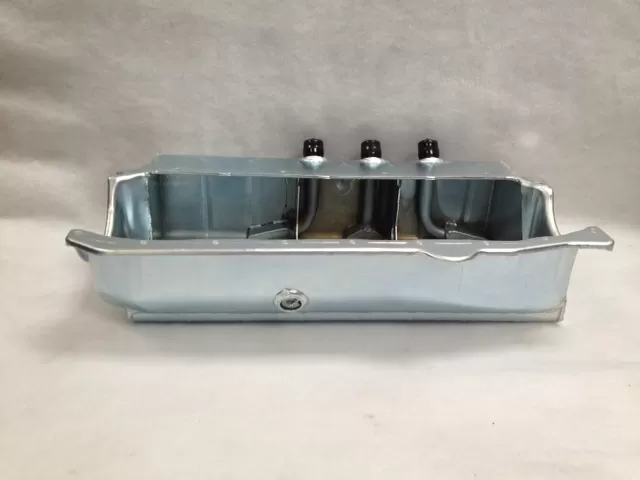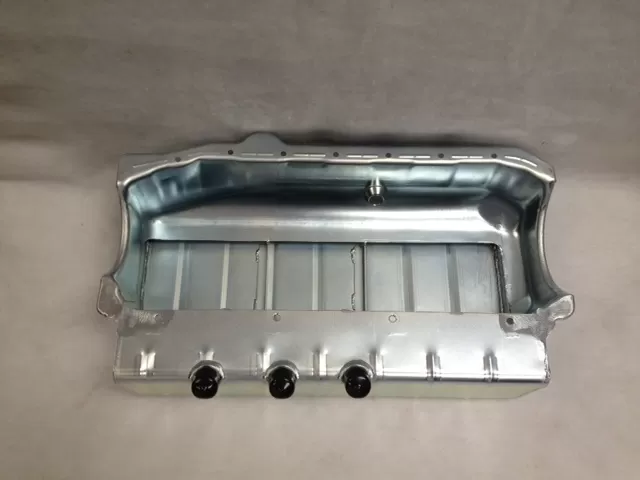 This steel dry sump oil pan is for the Small Block Chevrolet years 1957-1985 with the two piece rear main seal engines. This oil pan features: