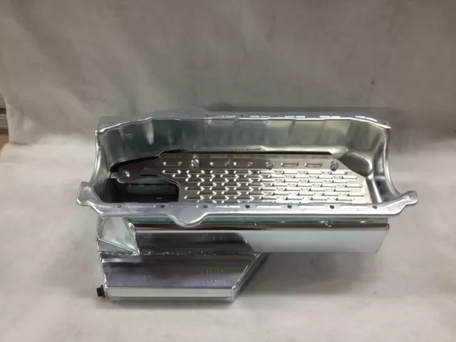 This steel wet sump oil pan is for the Small Block Chevrolet years 1957-1985 with the two piece rear main seal engines. This oil pan features: