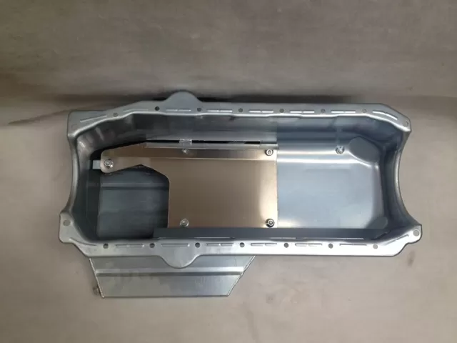 This steel wet sump oil pan is for the Small Block Chevrolet years 1986-2003 with the one piece rear main seal engines. This oil pan features: