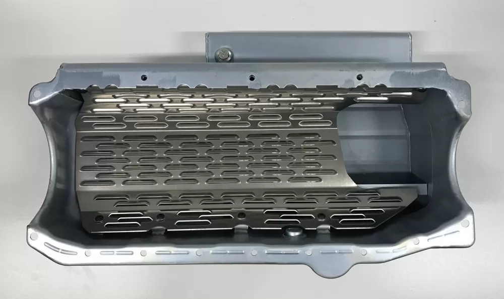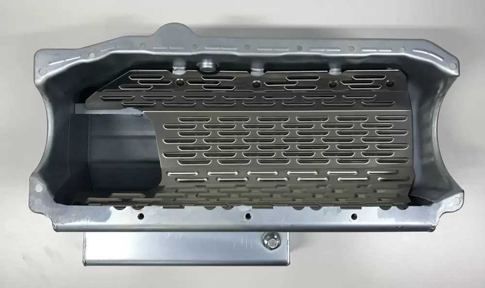 This oil pan was designed for race cars that do not have a cross member in the way.