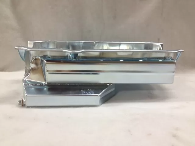 This steel wet sump oil pan is for the Small Block Chevrolet years 1986-2003 with the one piece rear main seal engines. This oil pan features: - a kick out that runs the length of the pan - the sump at 6 1/2” deep which allows for better ground clearance for asphalt race cars - six trapdoors - an oil temp fitting - an oil check level plug - a removable horsepower saving louvered windage tray - a clear zinc finish This oil pan is designed around the Chevrolet Camaro front stub with the engine set back. We recommend using an accusump because of the lower oil capacity, unless you are using a remote cooler and oil filter adapter. Oil capacity: 7 quarts with filter Use: Asphalt circle track (late model) Dipstick: Use JR131 Starter: Mini-starter Gasket: Thick front seal Dimensions: 12” L x 14" W x 6 1/2" H