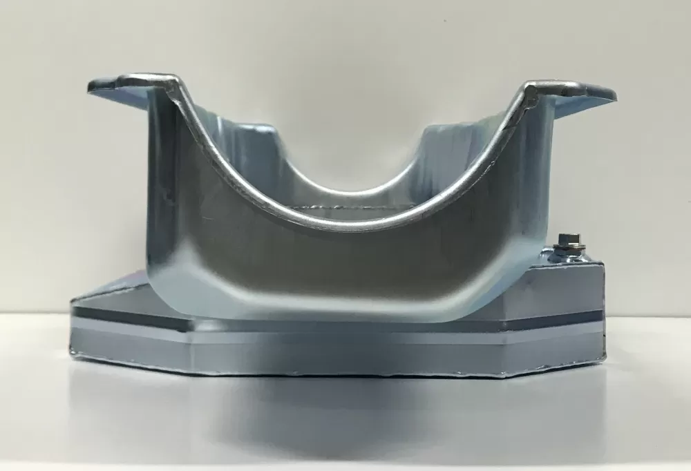 This oil pan is designed around the Chevrolet Camaro front stub with the engine set back.