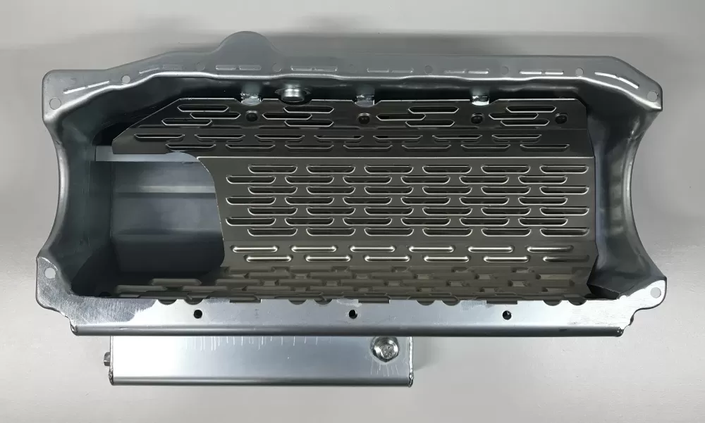 This steel wet sump oil pan is for the Small Block Chevrolet years 1957-1985 with the two piece rear main seal engines. This oil pan features:
