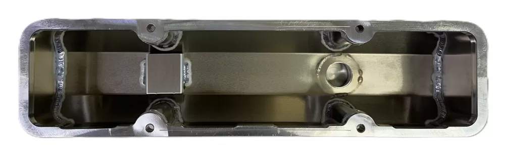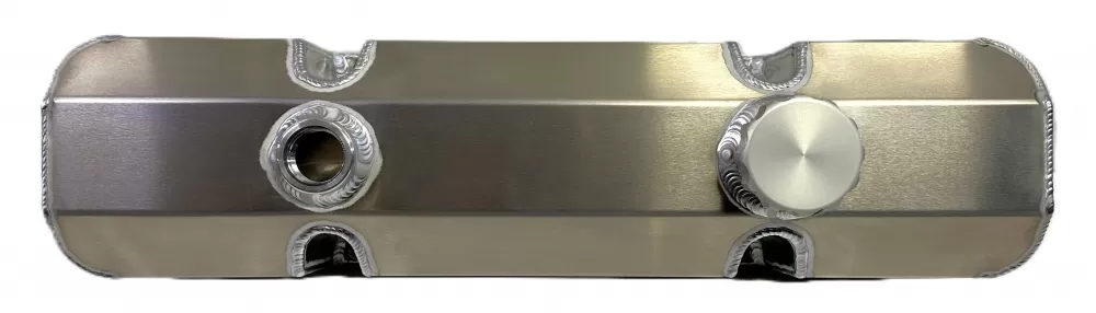 Right side fabricated aluminum valve cover for the Small Block Chevrolet. This valve cover features: