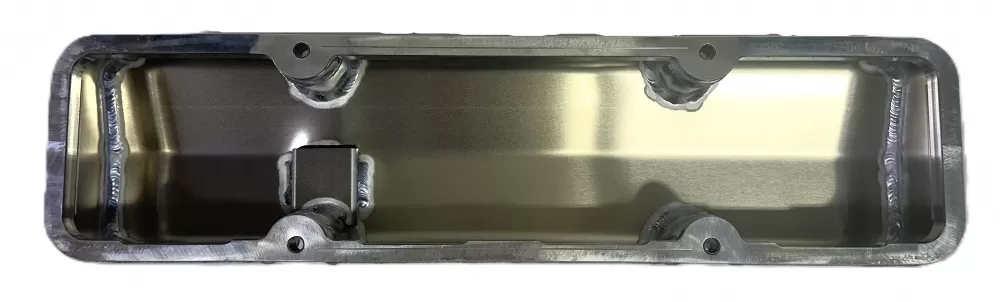 Right side fabricated aluminum short valve cover for the Small Block Chevrolet. This valve cover features: