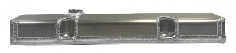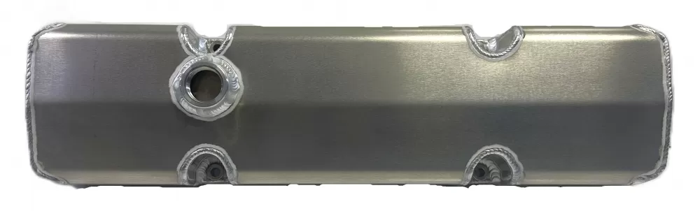Left side fabricated aluminum short valve cover for the Small Block Chevrolet. This valve cover features: