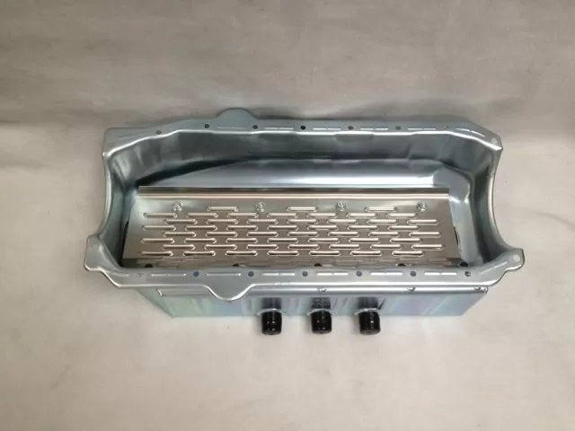 This steel dry sump oil pan is for the Small Block Chevrolet years 1957-1985 with the two piece rear main seal engines. This oil pan features:
