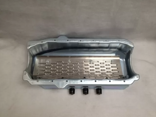 This steel dry sump oil pan is for the Small Block Chevrolet years 1986-2003 with the one piece rear main seal engines. This oil pan features: