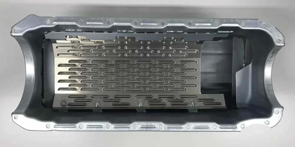 - a front and back splash plate to keep the oil from climbing up the back of the oil pan