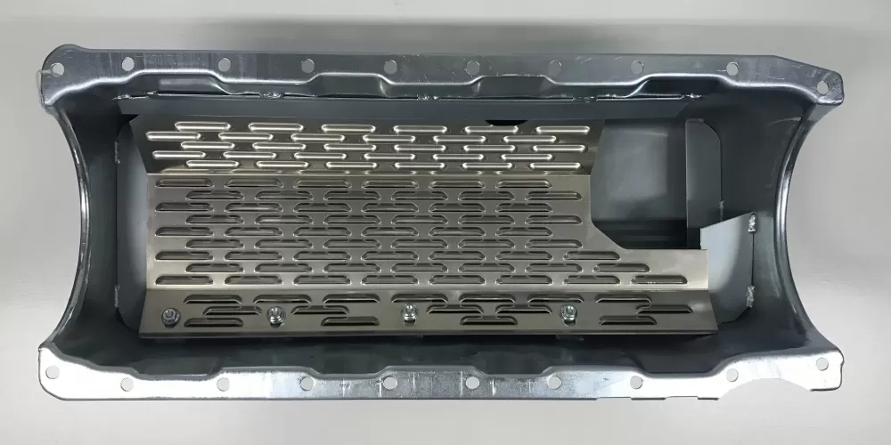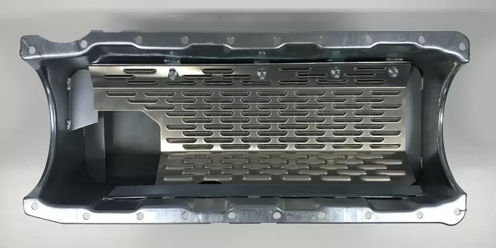 - a front and back splash plate to keep the oil from climbing up the back of the oil pan