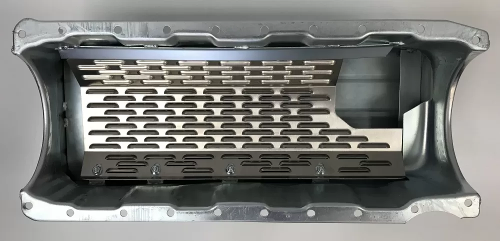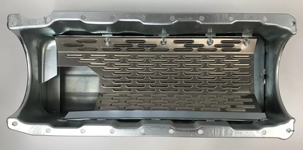 - a front and back splash plate to keep the oil from climbing up the back of the oil pan