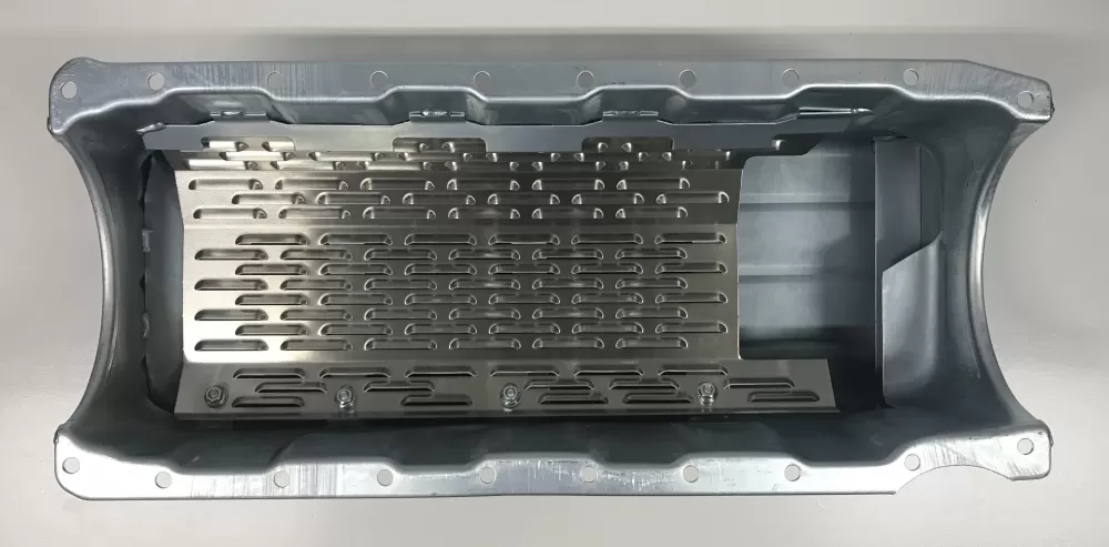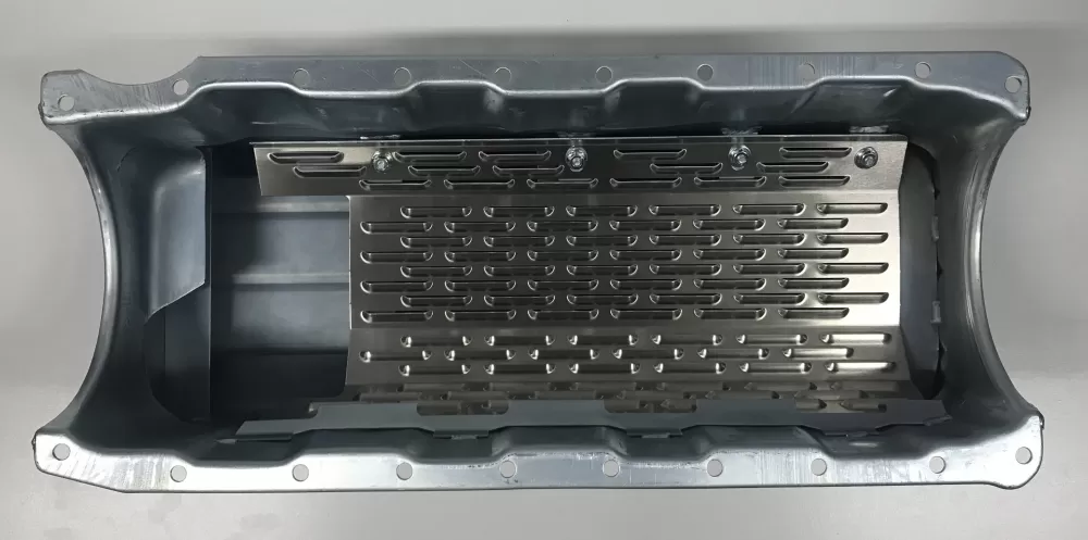 - a front and back splash plate to keep the oil from climbing up the back of the oil pan