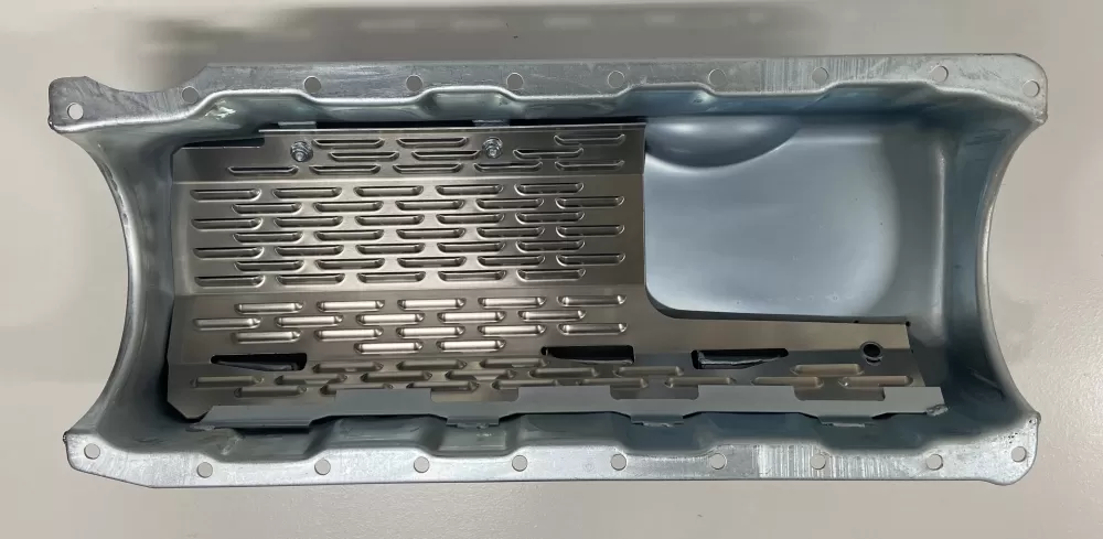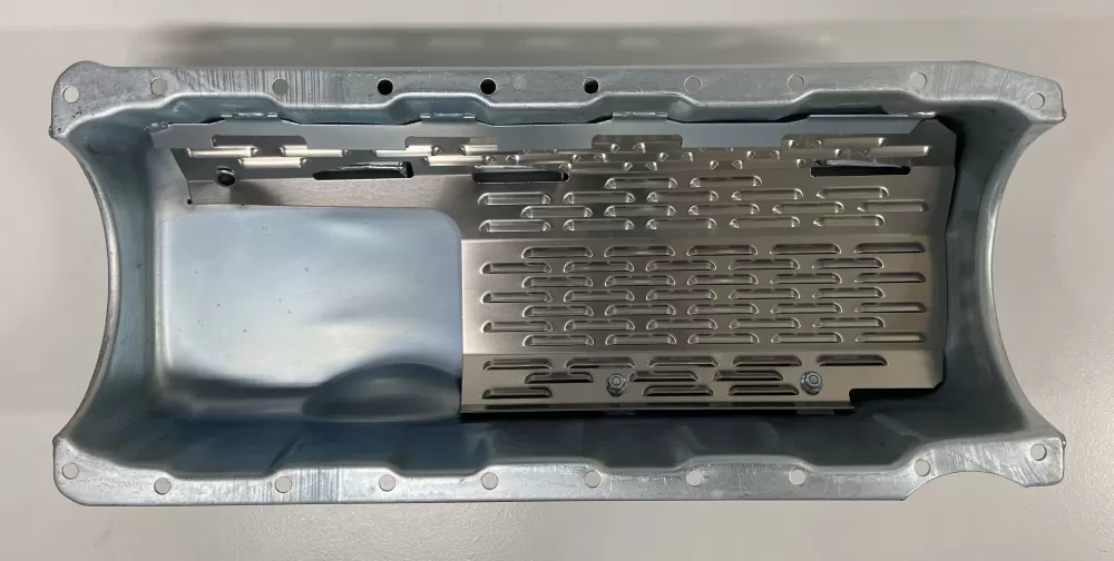 - a horsepower saving louvered windage tray which allows for maximum oil flow to the pickup scavengers
