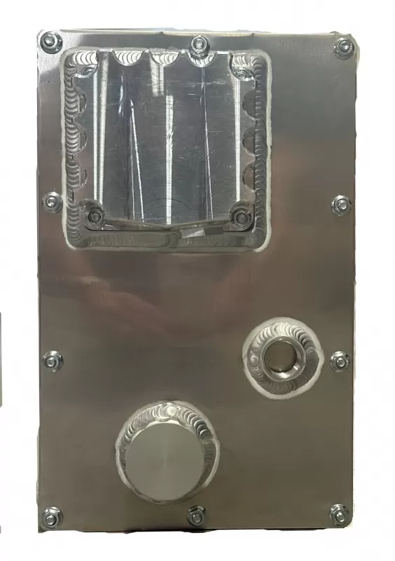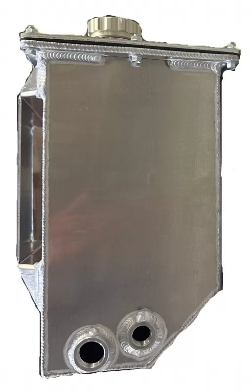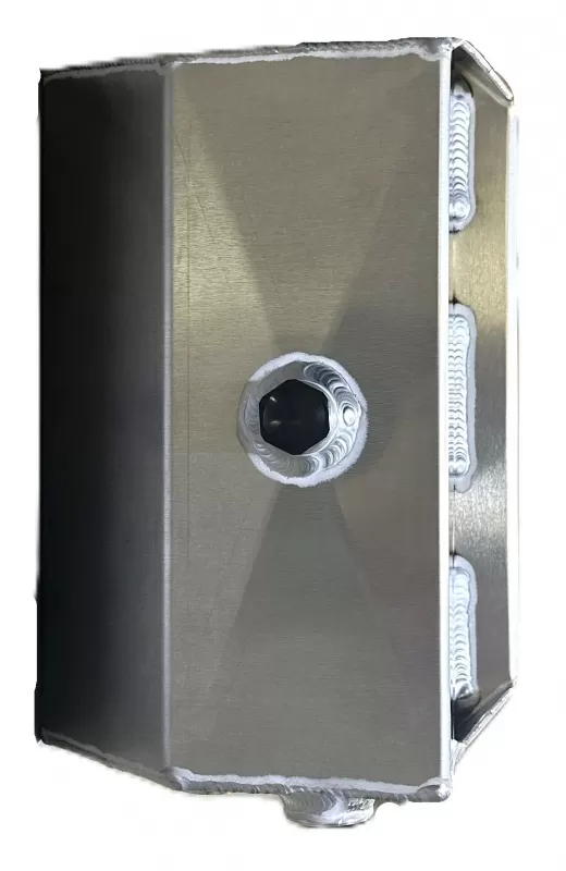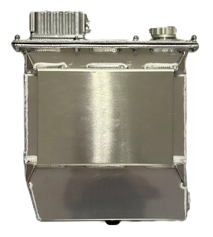 This is an aluminum dry sump tank with remote vent. This tank features: