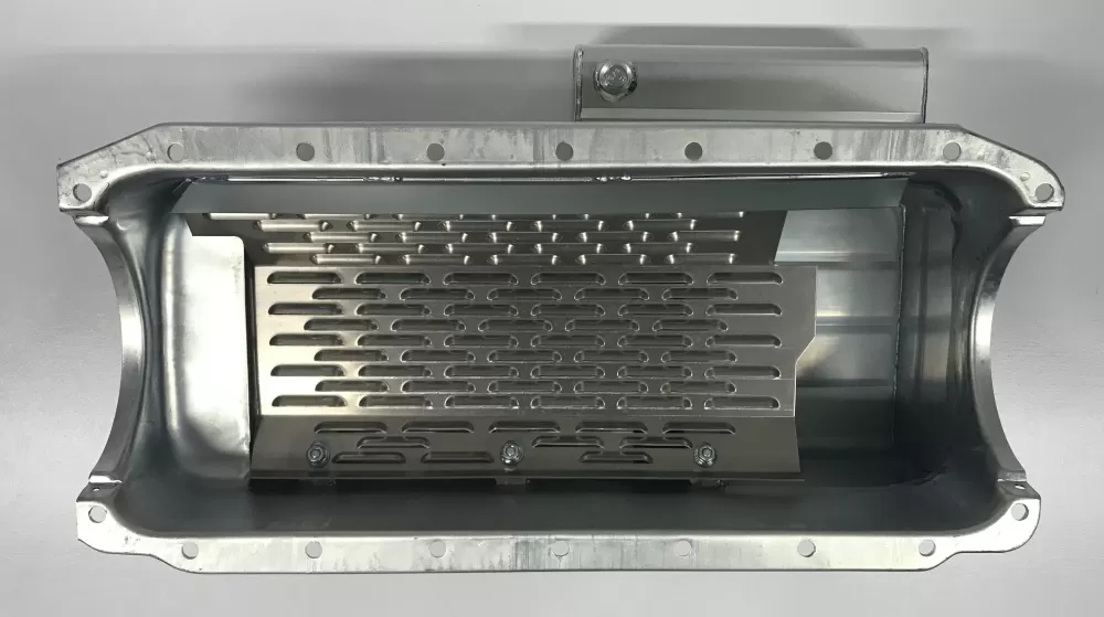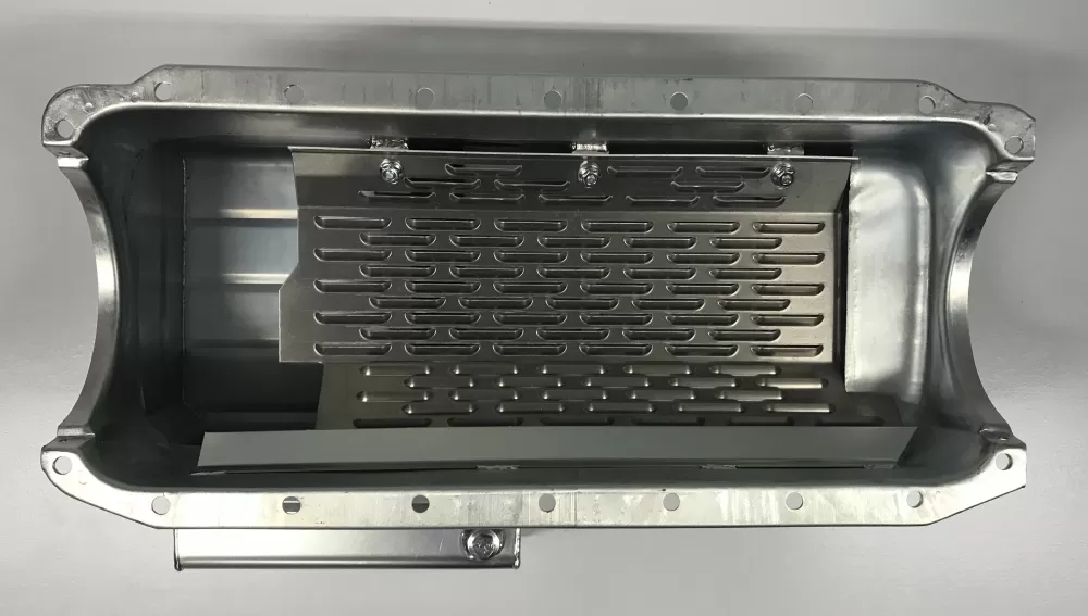 This steel wet sump oil pan is for the Small Block Mopar 318 and 340 engines. This oil pan features: