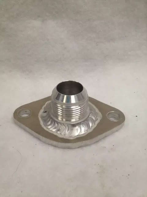 Aluminum water outlet divider with -20 an fitting outlet. This water outlet divider is used to help ensure the water in both sides of the upper engine is forced to exit the engine.