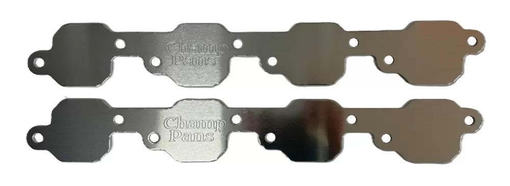 Aluminum two piece exhaust block off plates for the Big Block Chevrolet. These exhaust block off plates are for security when transporting or storing engines.