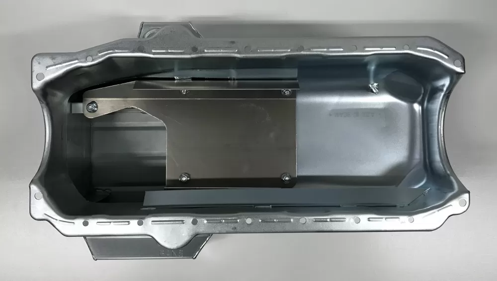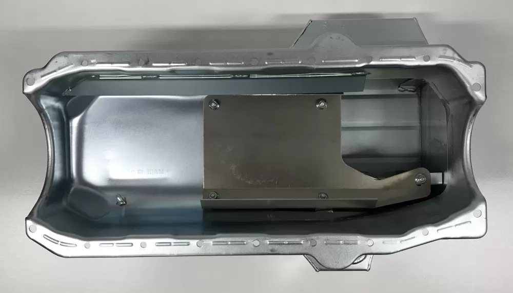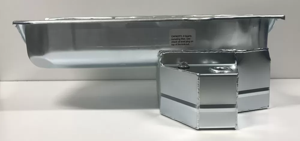 This oil pan is ideal for stock cars with cross members or rear steer linkage.