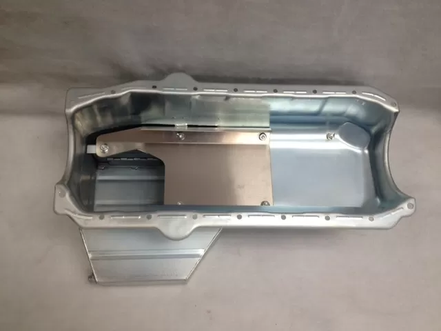 This steel wet sump oil pan is for the Small Block Chevrolet years 1986-2003 with the one piece rear main seal engines. This oil pan features: