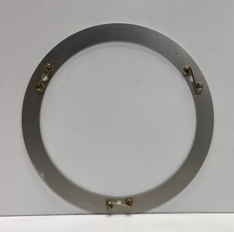 Aluminum mud cap ring with three dzus springs that gets pinched between the old style Weld beadlock and the Weld aluminum wheel.