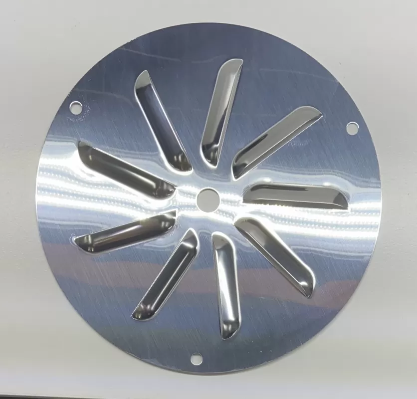 Polished aluminum mud cap cover for the standard Bassett beadlock wheels.