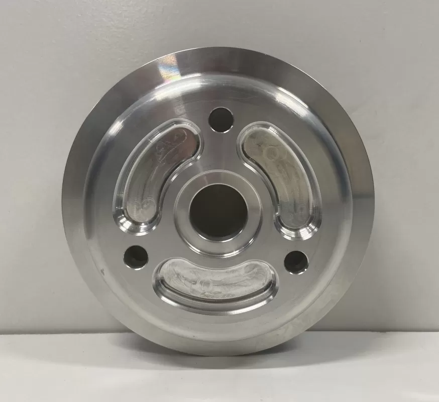 A lower water pump pulley for the Small Block Chevrolet with the long pump. This lower water pump pulley features: