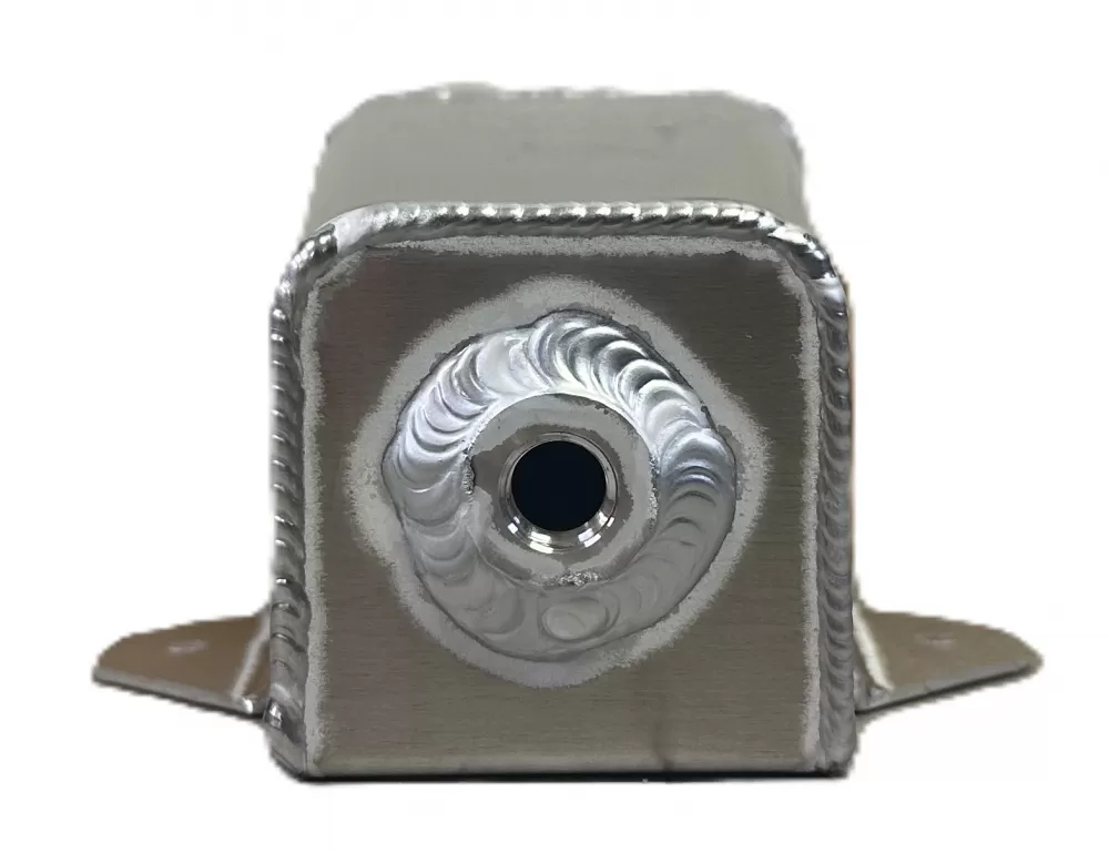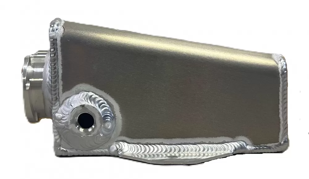 Aluminum radiator burp tank with sealed fire wall mount. This tank comes with one 1/2" pipe hole and two 1/4" pipe plugs. No radiator cap included.