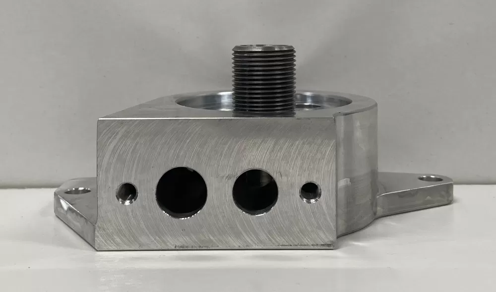 Billet aluminum oil filter adapter for LS1 oil pans. It is a M22x1.5 thread. You can use either the Wix 57060 short filter or Wix 57045 tall filter.