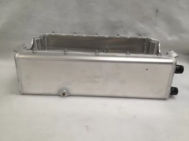 This aluminum dry sump oil pan is for the Small Block Chevrolet years 1957-1985 with the two piece rear main seal engines. This oil pan features: