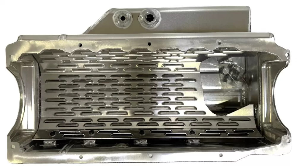 This aluminum wet sump oil pan is for the Small Block Chevrolet years 1986-2003 with a one piece rear main seal engines. This oil pan features: