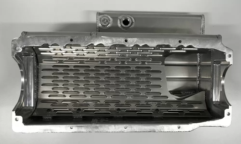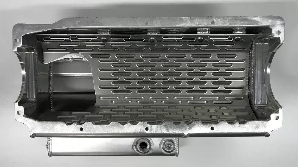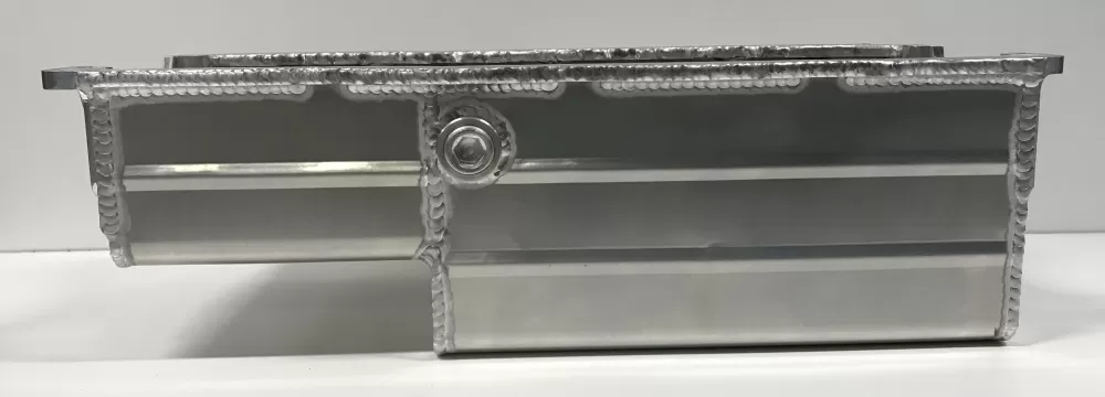 This aluminum wet sump oil pan is for the Small Block Chevrolet years 1957-1985 with the two piece rear main seal engines. This oil pan features:
