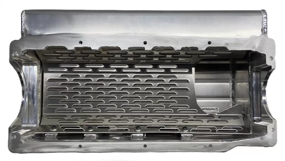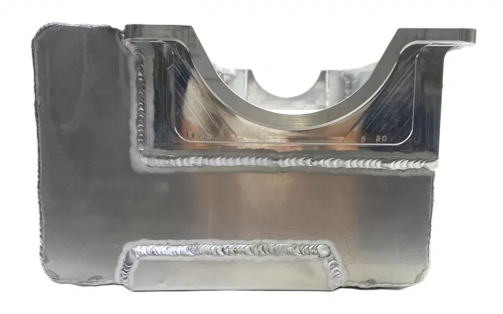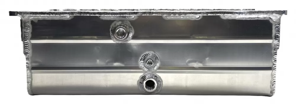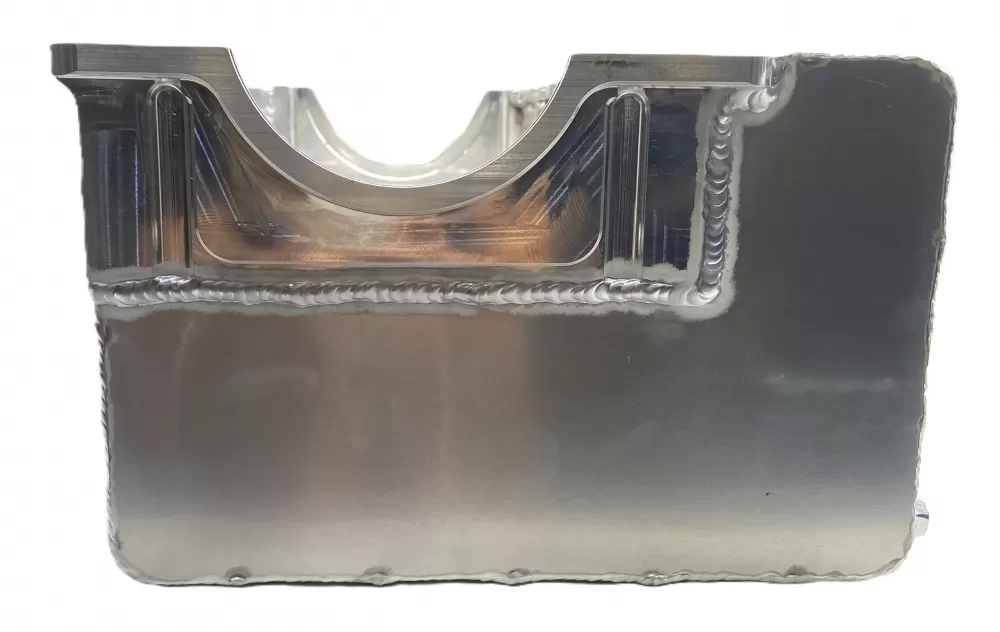 This aluminum wet sump oil pan is for the Small Block Chevrolet years 1957-1985 with the two piece rear main seal engines. This oil pan features: