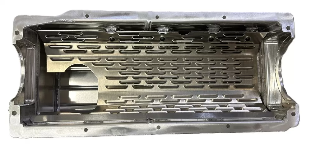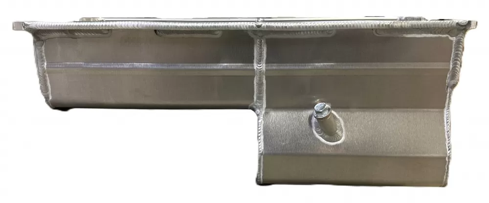 This aluminum wet sump oil pan is for the Small Block Chevrolet years 1957-1985 with the two piece rear main seal engines. This oil pan features: