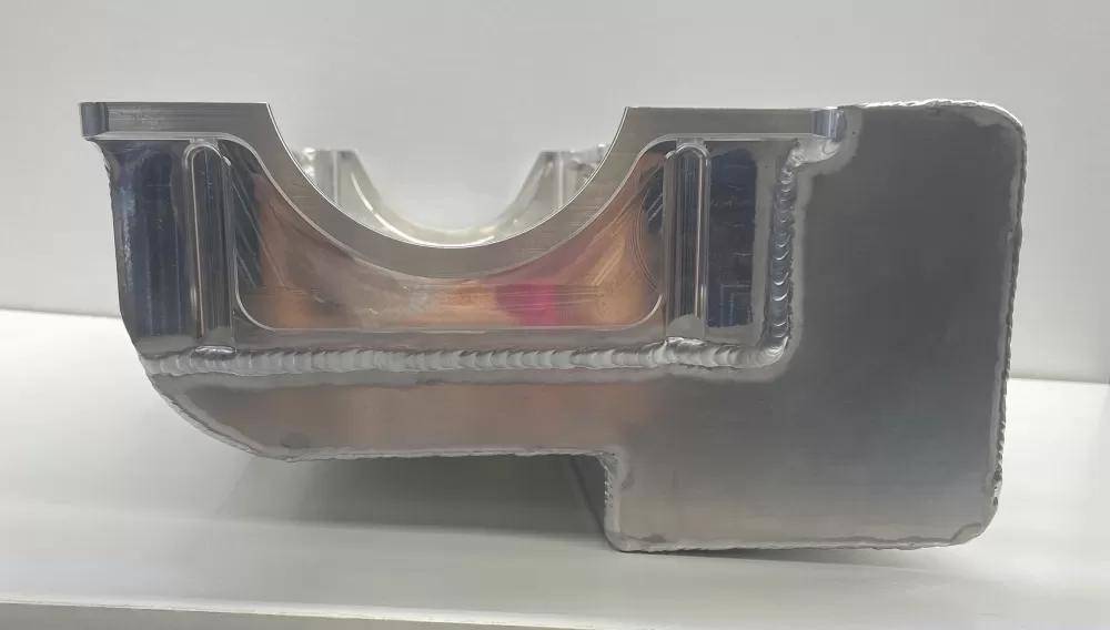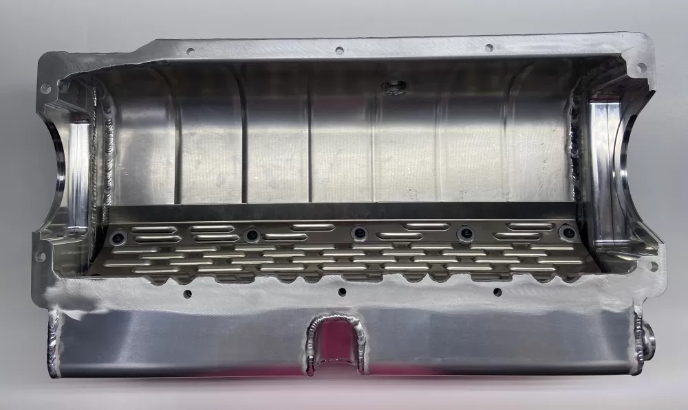 This aluminum dry sump oil pan is for the Small Block Chevrolet years 1957-1985 with the two piece rear main seal engines. This oil pan features: