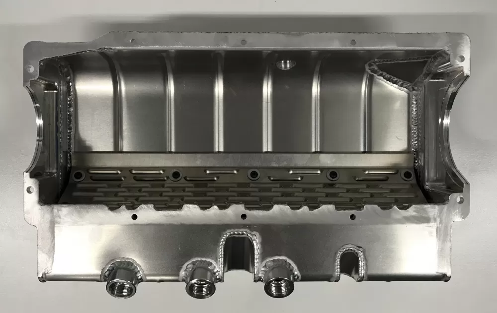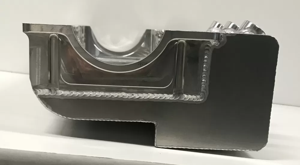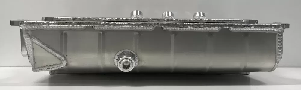 This aluminum dry sump oil pan is for the Small Block Chevrolet years 1957-1985 with the two piece rear main seal engines. This oil pan features: