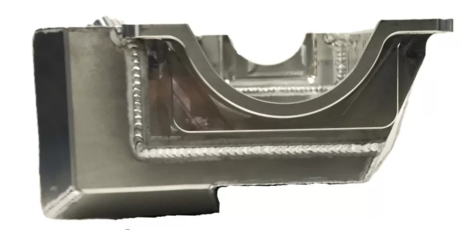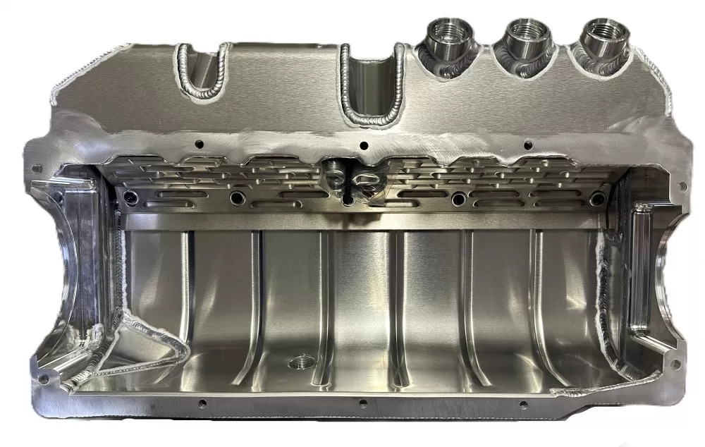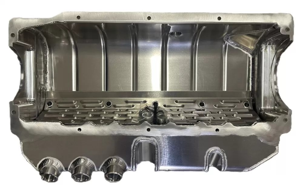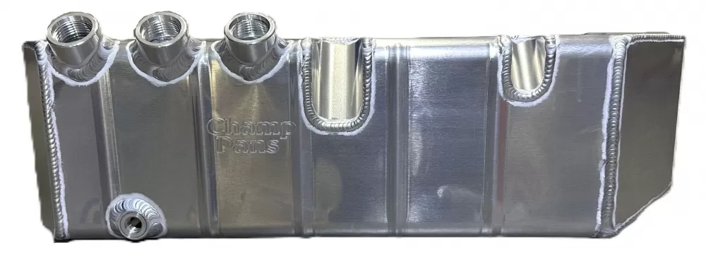This aluminum dry sump oil pan is for the Small Block Chevrolet years 1957-1985 with the two piece rear main seal engines. This oil pan features: