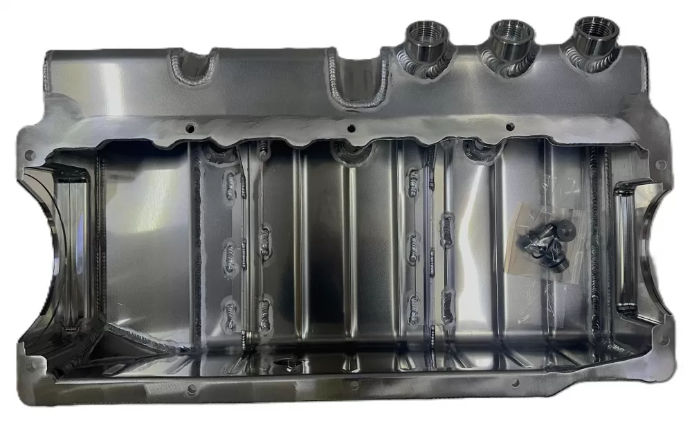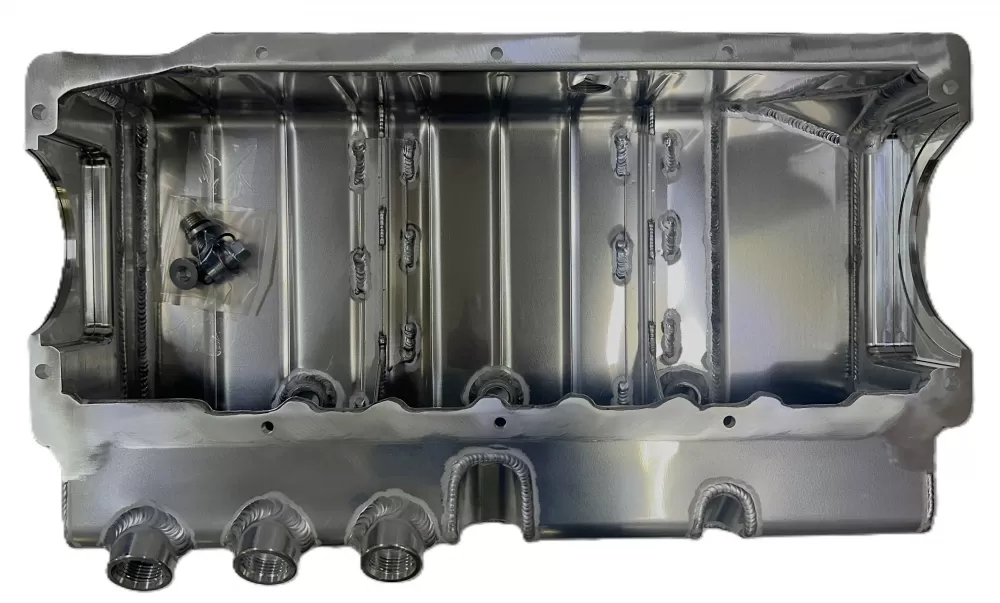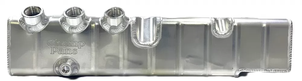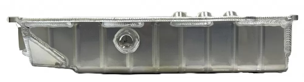 This aluminum dry sump oil pan is for the Small Block Chevrolet years 1957-1985 with the two piece rear main seal engines. This oil pan features: