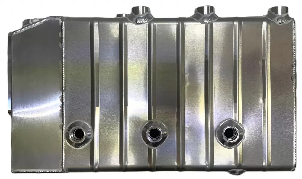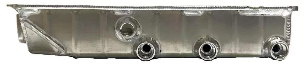 This aluminum dry sump oil pan is for the Small Block Chevrolet years 1957-1985 with the two piece rear main seal engines. This oil pan features: