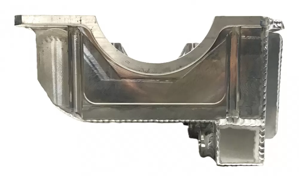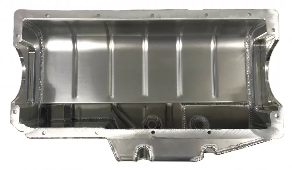 This aluminum dry sump oil pan is for the Dart Small Block Chevrolet engines with the spread rails. This oil pan features: