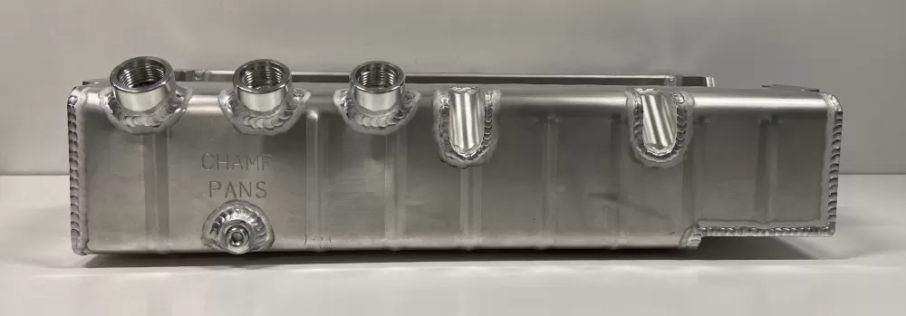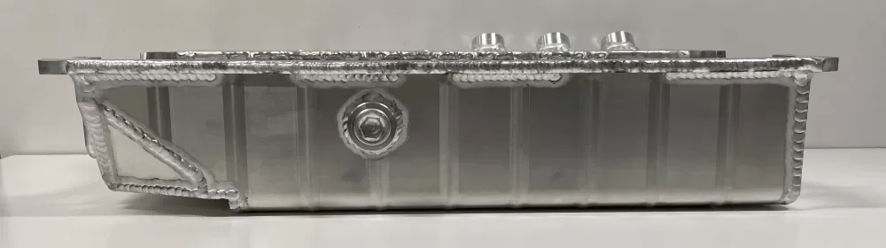 This aluminum dry sump oil pan is for the Dart Small Block Chevrolet engines with the spread rails. This oil pan features: