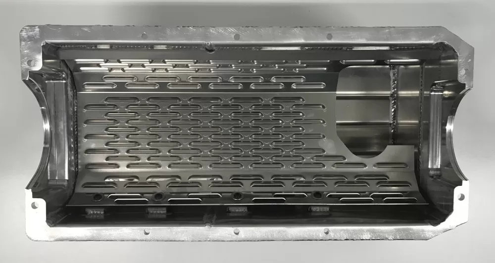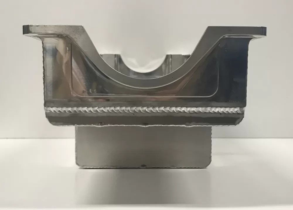 This aluminum wet sump oil pan is for the Dart Small Block Chevrolet with the spread rails. This oil pan features: