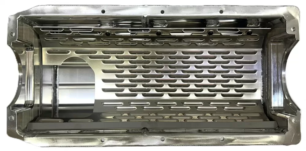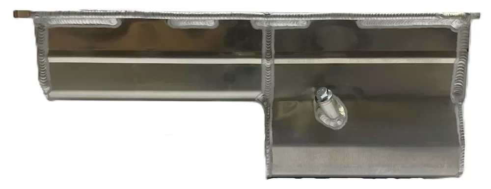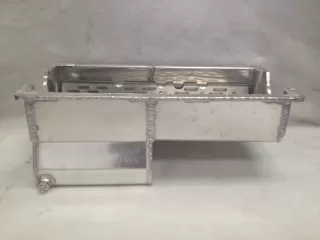 This aluminum wet sump oil pan is for the Dart Small Block Chevrolet with the spread rails. This oil pan features: